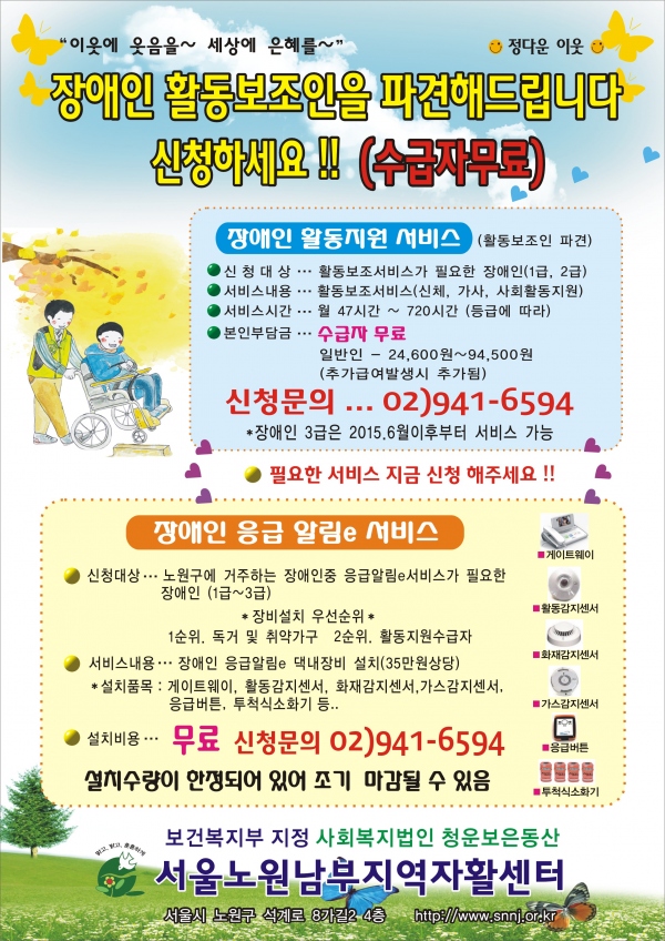 서울노원남부지역자활센터 장애인에게 활동보조인을 파견해 드립니다!!!