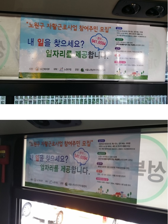 서울노원남부지역자활센터 자활사업 참여자 모집을 위한 버스 내부광고